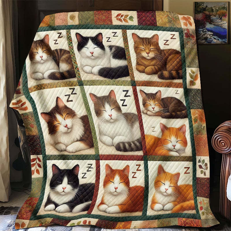 Vintage Sleeping Cat Blanket - D270 - Premium Blanket