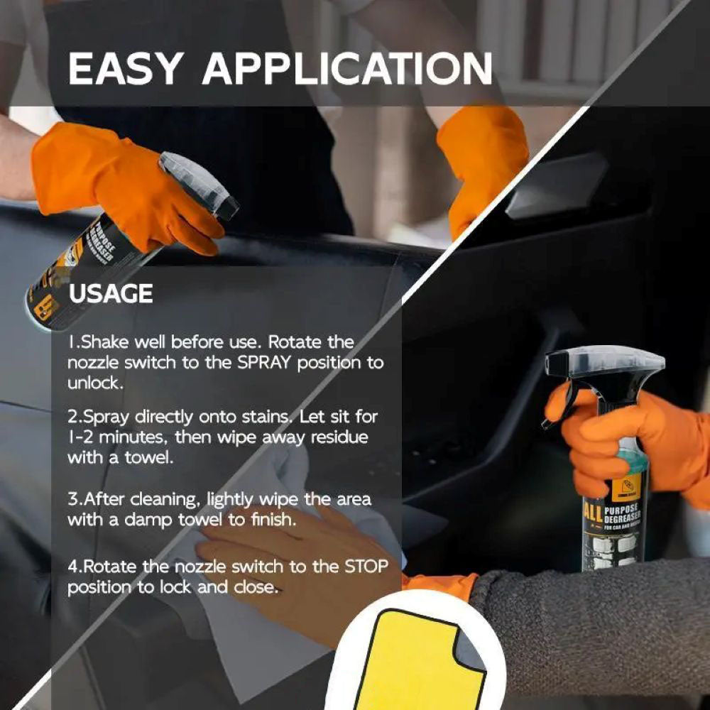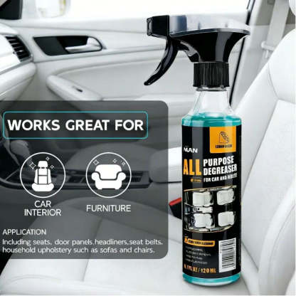VERSATILE CLEANING POWER: All-purpose degreaser effectively removes grease, oil, dirt, and stubborn stains from car interiors including seats, door panels, headliners, seat belts, and household surfaces like furniture and upholstery