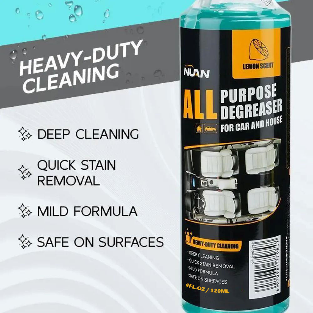 This NUAN All Purpose Degreaser is a versatile heavy-duty cleaning solution designed to tackle tough stains and grime in both your car and home. The powerful formula features a refreshing lemon scent that leaves surfaces smelling fresh while cutting through grease, dirt, and stubborn residue with ease.